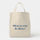 "What's in it" tote bag with logo on reverse.
