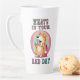 "What's In Your Bad Day" latte mug design, features a charming and whimsical dog having a bad day self soothing with a drinking fit. This adorable and colorful design is here to brighten your day, no matter what life throws your way. Embrace the playful humor of our design and let this cute pup bring a smile to your face.