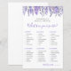 What’s In Your Purse? Bridal Shower Game. This playful activity invites guests to search through their purses and check off items from a fun point-based list, making it an easy and entertaining icebreaker for any bridal shower. The design features delicate lavender and wisteria flowers along the top, adding a soft, elegant touch, while the rest of the layout remains clean and simple.