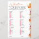 What's in your purse? | Bright floral citrus bridal shower games. Other games available as well as matching items such as invitation, welcome sign, tags and more!