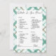 Introducing the captivating "What's in Your Purse" game, a delightful addition to your bridal shower that promises endless laughter and connection. Against a backdrop of pure white, adorned with an enchanting green and white plaid border, this game exudes a sense of timeless charm and modern sophistication, setting the stage for a truly unforgettable celebration.