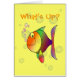 What's Up Colourful Fish and Bubbles Greeting Card. Funny multi colour fish blowing pink bubbles, with more transparent bubbles in the background. What's Up? on a yellow card. Add your own greeting inside, or delete inside wording and leave blank.