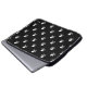 Black laptop sleeve with a white skull and crossbones pattern. You can change the background colour, and size and angle of the pattern.