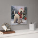 Wheaten Terrier Dog in Snow Christmas Square Wall Clock