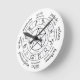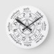 A clock that shows the wheel of the year: astrological signs, equinox and solstice quarter days, cross quarter days and sabbats. Imbolc / Candlemas, Ostara / Spring Equinox, Beltain /May Eve, Litha / Summer Solstice, Lughnassad / Lammas, Mabon / Fall Equinox, Samhain / Hallow's Eve, Yule / Winter Solstice.