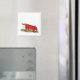 This adorable magnet features a sweet vintage illustration of a red wheelbarrow.