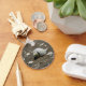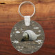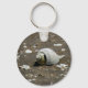 Key chain featuring a calming scene of a whelk shell on a sandy beach.