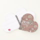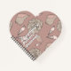 Custom, heart-shaped notebook with illustrated seashells design. Mauve pink color with a pattern of whelk shells in shades of beige with pink. This cute notebook is perfect for a beach loving teenager, with optional lined or blank pages.