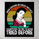 When Choosing Between Two Evils I Always Pick The One I've Never Tried Before. This retro sarcastic funny quote accessory makes a great gag gift for a man or woman who have a reputation for bad decisions or being a troublemaker, and love sarcasm. Funny saying design for anyone who loves to get into mischief with their friends, likes going to a party, getting into trouble or drinking together. Perfect for anyone with a sassy sense of humour. Features an innocent looking woman set against a sunset.