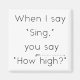 This funny magnet reads "When I say 'Sing,' you say 'How high?" With an 8va symbol for emphasis—perfect for conductors and music teachers.