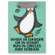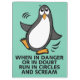 When in danger or in doubt, run in circles and scream. - This silly penguin has some useful advice for when you feel like freaking out and it always works! Cute Penguin Graphic with funny saying.