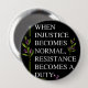 WHEN INJUSTICE BECOMES NORMAL, RESISTANCE BECOMES 4 INCH ROUND BUTTON