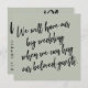 This suite's distinction is due to the bold, casual handwritten script font used for accent phrases. If you're in the position of needing to inform your wedding guests that you've had to change your big date, here is a bold option. In this piece, the hand-lettered script font was used to create simple typography graphics. On the front is "We will have our big wedding when we can hug our beloved guests" and on the back, "New Plan". Use the template fields to add your personal details and make this modern design your own. The background can be changed to any colour you prefer. Please reach out with any special requests or for customizing assistance. // 105 //
