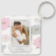Where It All Began Romantic Couples Personalized Keychain feature a modern abstract pink floral with gold glitter accents. In the centre add your favourite photo and your text of how you met. Easy DIY (Do It Yourself) by editing the text in the text boxes provided. Designed by ©Evco Studio www.zazzle.com/store/evcostudio