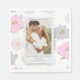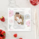 Where It All Began Romantic Couples Personalized Napkins feature a modern abstract pink floral with gold glitter accents. In the centre add your favourite photo and your text of how you met. Easy DIY (Do It Yourself) by editing the text in the text boxes provided. Designed by ©Evco Studio www.zazzle.com/store/evcostudio