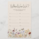 Where Were We Bridal Game. This stylish & elegant bridal shower boho wedding shoe game features gorgeous hand-painted watercolor wildflowers arranged as a lovely frame and elegant calligraphy script. The back includes a lovely coordinating pattern. Find matching items in the Boho Wildflower Bridal Shower Collection.