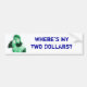 Where's My Two Dollars Bumper Sticker