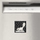 This vintage black and white image has a winking cat dancing across the keys of a piano. The background is black with white musical notes. See my store Art by MAR for matching products with this design.