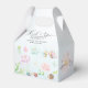 Welcome to a whimsical world of nature's tiny wonders with our 'A Little Love Bug Is On Her Way' thank you favour box. This enchanting box is a perfect for you to send your guest on their way, saying, thank you for their gifts and attending your celebration. Adorned with delicate watercolor elements, the invitation features a delightful ensemble of a honeybee, butterfly, ladybug, snail, caterpillar, beetle, and mayfly, each rendered with a gentle touch. The artwork is nestled among a flourish of flowers and greenery, setting a scene of natural beauty and charm.