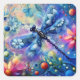 Whimsical Abstract Dragonfly Floral Teal Blue Pink Square Sticker