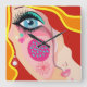 Whimsical Abstract Face Eye Red Yellow Patterns Square Wall Clock
