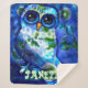 Whimsical Abstract Owl Blue Green Personalized Sherpa Blanket