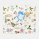 Whimsical and magical Alice's Adventures in Wonderland mixed media pattern design with faux glitter elements with flying Alice, White Rabbit, tea party items, and more, with a customizable name in the whimsy script for a personalized gift.