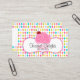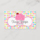 © 2011 Socialite Designs. Whimsical cupcake, with swirl icing and cherry, business cards ready for you to personalize for your business. Background has a fun and colourful argyle / diamond pattern. Font style and colour can be changed. Need HELP with customizing? Please do not hesitate to contact me with your requirements.