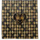 A whimsical and romantic goth design to turn an ordinary pillow into a Valentine featuring an elegant heart with golden roses on a dramatic black and gold harlequin pattern background.