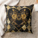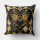 A whimsical and romantic goth design to turn an ordinary pillow into a Valentine featuring an elegant heart with golden roses on a dramatic black and gold harlequin pattern background.