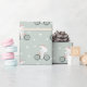 This whimsical and modern Christmas wrapping paper set features a cute polar bear on a bike pattern on mint green. The perfect winter pattern design for your gifts this holiday season.