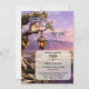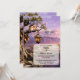 Whimsical wedding invitation featuring a painting of a lavender landscape at sunset with lantern and love birds. On the back is a QR code template with RSVP options. Perfect for a "Nothing fancy, just love" casual wedding celebration.