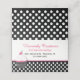 Pretty pink, black, and white bakery business fold business and customer loyalty card. The front has cute graphics of a cupcake and polka dots. Inside the folded business card there are 10 blocked off squares, on the bottom half, for loyalty stamps. All text inside and out is ready to personalize for your bakery business.