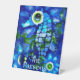 Whimsical Big-Eyes Seahorse Art Blue Personalized Pedestal Sign