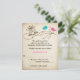 This whimsical and romantic love birds wedding reply card has a pair of lovebirds on it in shades of pink and and turquoise blue with a couple of red hearts floating between them as they sit on a brown cherry blossom branch that has taupe and grey leaves and an ornate scrolled bird cage on it that matches the wedding invitation shown below. The background is a FAUX aged linen fabric look that lends itself well to this shabby chic design. It is shown here on basic paper. It is easily customized with your own information. ****Please note that everything will print as it appears on your monitor. Zazzle will not edit anything for typos or misalignment etc., and I will not see it once you have ordered it. If you need help with your wording, please email me BEFORE you order. If there are any other items you need to make your event extra special, please email your request to niteowlstudio@gmail.com.
