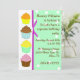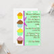 Colourful fun birthday party invitations, perfect for any young girl. Decorated with yummy looking cartoon graphics of cupcakes running, down the left side, a green with white polka dot text side, and a mauve ribbon running between them. Customize the text in style, colours, and size to your likes. Great looking birthday invitation. Matching stamps available.