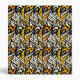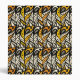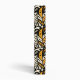 Stylized whimsical hand-drawn peacock feather pattern in black and gold.