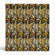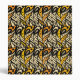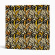Stylized whimsical hand-drawn peacock feather pattern in black and gold.
