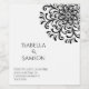 Celebrate your special day with a touch of elegance and sophistication with our unique and artfully designed wedding invitation set. Featuring a white background adorned with a mesmerizing black rotational symmetry pattern of swashes and dots making up a flowery pattern, this invitation beautifully captures the essence of timeless romance and modern charm.