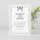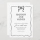 Design feature a simple black and white design with a cute hand drawn wavy border and a small black bow at the top. Using a clean classic font and handwritten calligraphy script. It looks elegant but also a little playful.