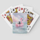 Enjoy playful seaside fun with this whimsical watercolor deck of cards featuring a black cat floating on a pastel flamingo in gentle ocean waves. Soft pink and blue tones and delicate brushstrokes make each card full of lighthearted, imaginative charm.