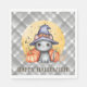 Halloween napkins with a whimsical black cat in a witch hat, pumpkins, and a full moon on a plaid background. Perfect for parties, October birthdays, or family-friendly Halloween entertaining.