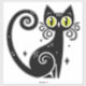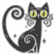 Illustrated depiction of a black cat adorned with charming green eyes and stylized swirls, symbolizing whimsy and artistic expression, suitable for themes of fantasy, mystery, and contemporary design.