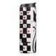 This whimsical and textured illustration features a majestic black cat wearing a golden crown and collar. The stylized cat is set against a bold black and white checkerboard pattern, with many floating red hearts filling the space.