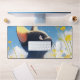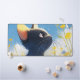 Bring the undeniable joy and vibrant colours of a sunny summer meadow right to your desk with this whimsical black cat desk mat. This highly detailed digital illustration captures a moment of pure, curious charm, featuring a sleek black cat gazing upward with an expression of delightful interest. The cat's form is beautifully highlighted with warm amber tones on its ear tips and muzzle, giving it a soft, lifelike glow. The feline is completely immersed in an abundant, striking field of vibrant yellow buttercups and other cheerful sunny wildflowers, perfectly complemented by subtle splashes of cool soft blue blossoms. The composition is crowned by a cheerful bright blue sky dotted with fluffy white clouds, using a bold, painterly digital style that maximizes colour contrast and impact. This black cat desk mat is an ideal accessory for cat lovers, nature enthusiasts, and anyone looking for a bold, joyful, and artistic way to personalize their office or computer setup. The dominant colour palette of sunny yellow, deep black, and sky blue ensures maximum visibility and a wonderfully vibrant aesthetic.