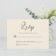 Whimsical minimalistic modern, customizable black script typography with light beige background elegant RSVP response card invitation. The light beige background with black calligraphy adds a touch of classic elegance.