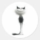 Whimsical Black White Grinning Cat Illustration Classic Round Sticker