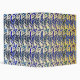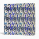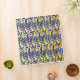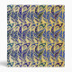 Stylized and whimsical hand-drawn peacock feather pattern in blues and gold.