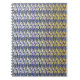 Stylized and whimsical hand-drawn peacock feather pattern in blues and gold.
