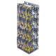Whimsical blue and gold peacock feather pattern wine gift bag
